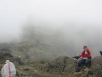 Nach dem sehr guten Abendessen gestern und dem reichlichen Frühstück geht`s los zum Barrango Camp. Herliches Wetter und plötzlich Stiche im Nackenbereich. Blitzschnell hatte ich mir den Nacken durch die Sonnenein-wirkung verbrannt. Es geht rauf und runter, an riesigen Vukansteinen vorbei, kaum vorstellbar das diese tonnenschwere Steine über hunderte Meter weit von Vulkan ausgestoßen wurden. Nach einem kurzen Abstieg erreichen wir wieden Pflanzen, allerdings sehr ungewöhliche Gebilde. Es ist sehr nebelig, nein, wir sind in den Wolken !