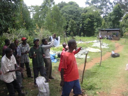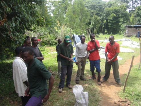 Das vereinbarte Trinkgeld haben wir um 75 Dollar erhöht, weil wir äußerst zufrieden waren. Als Dank haben uns die Träger wieder ein Lied gesungen und einen Tanz aufgeführt, alles sehr bewegend der Abschied. Beeindruckende Leute denen man ihre Erleichterung ansieht, sie haben es auch geschafft und können zu ihren Familien zurück. Wir sind dann alle 14 Leute mit dem gesamten Gepäck im viel zu kleinen Bus zurück zum Hotel gefahren . Es war sehr eng im Bus, die Träger haben wieder gesungen, wir fuhren an ärmlichen Blechhütten vorbei, an staunenden Kinderaugen, an winkenden Landarbeitern, an einer Metzgerei an deren Dach ein halbe Ziege hing, an Kaffeeplantagen in die staubige hektische Stadt.